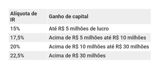 Por outro lado, acima desse valor, o investidor terá que pagar imposto, que é progressivo (15% para lucros de até 5 milhões de reais, chegando a 22,5% se o ganho for acima de 30 milhões de reais no mês).