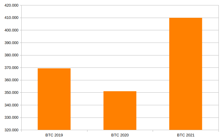 Por sua vez, nos 12 meses de 2021 o preço do Bitcoin saltou 69,99%, indo de R$153.476,04 em 01/01 para R$260.894,18 em 31/12.
