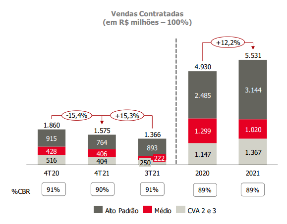 No ano, as vendas contratadas atingiram R$ 5.531 milhões, sendo 12% superior ao mesmo período de 2020.