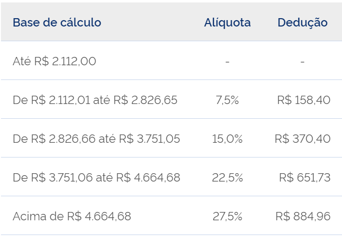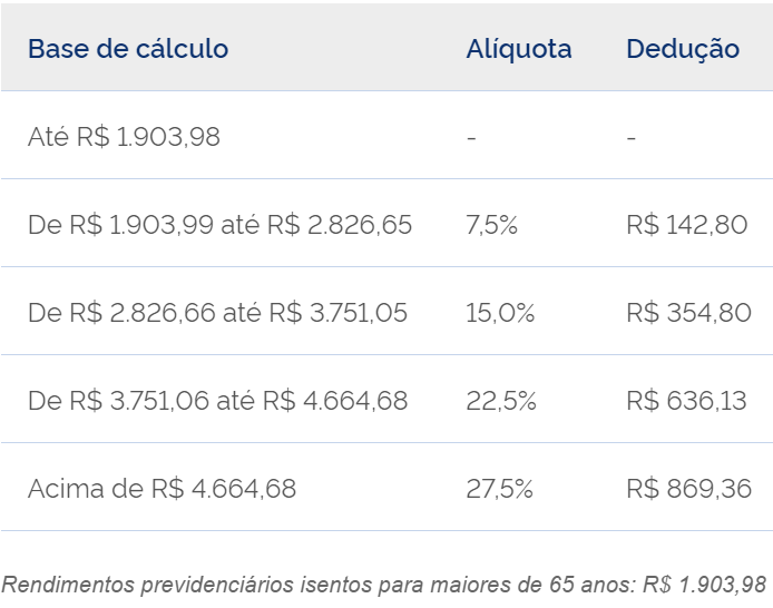 Com isso, a tabela (em vigor desde 1º de maio de 2023) válida para o IRPF 2024, ficou da seguinte forma: