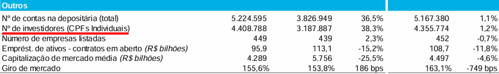 Por outro lado, o número de investidores pessoas físicas em junho de 2022 chegou a 4,4 milhões, alta de 38,3% em relação a junho de 2021 (3,18 milhões de CPFs).