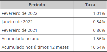 Para o cálculo do índice do mês, o órgão comparou os preços coletados entre 29 de janeiro e 25 de fevereiro de 2022 (referência), com os preços vigentes no período de 29 de dezembro de 2021 a 28 de janeiro de 2022 (base).