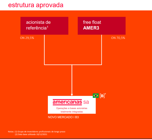 De acordo com a empresa, “A reorganização melhora a governança corporativa, aumenta a liquidez de AMER3, elimina o desconto de holding de LAME3 e LAME4 e reforça o entendimento da companhia pelo mercado.“