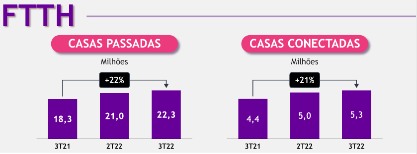 Por sua vez, a receita fixa total manteve o desempenho positivo (+2,1% a/a) pelo quinto trimestre consecutivo, com destaque para a receita de FTTH (fibra para casa), que cresceu 20,1% na base de comparação.