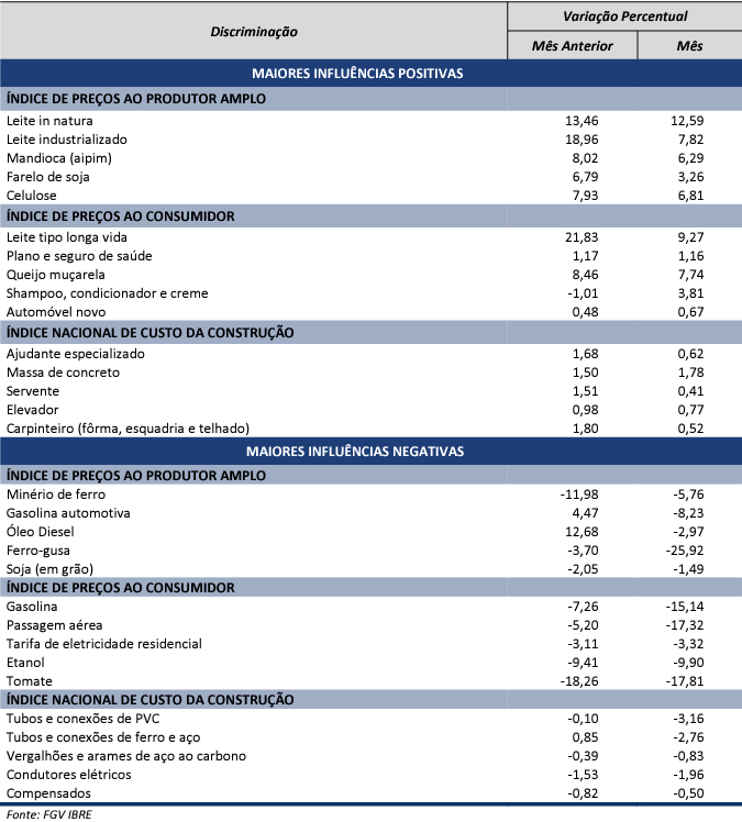 Por fim, cabe lembrar que o IGP-M, Índice Geral de Preços do Mercado, indicador de inflação apurado e divulgado pela FGV, é resultado da média ponderada dos outros três índices apontados acima, na seguinte proporção:
