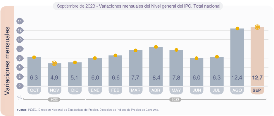 A inflação ao consumidor na Argentina subiu 12,7% em setembro comparado ao mês anterior. Esta foi a inflação mensal mais alta do país em 21 anos, enquanto a inflação anual argentina acumulada chegou ao impressionante patamar de 138,3%.