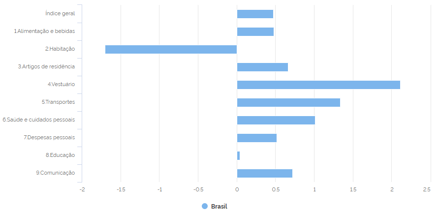 Entretanto, dos 9 grupos de produtos e serviços pesquisados IBGE, oito tiveram alta em Maio. Entre eles os principais foram vestuário (+2,11%) e transportes (+1,34%).
