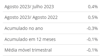 No entanto, em relação a agosto de 2022, na série sem ajuste, a indústria cresceu 0,5%, após registrar queda de 1,1% em julho. Já nos oito primeiros meses do ano, a indústria acumula um recuo de 0,3%, enquanto no período de 12 meses, apresenta variação negativa de 0,1%.
