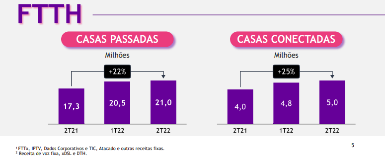Por sua vez, a receita fixa total manteve o desempenho positivo (+1,7% a/a), com destaque para a receita de FTTH (fibra para casa), que cresceu 23,7% na base de comparação.